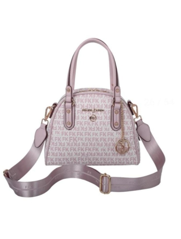 Bowling em monograma com alça de mão, e transversal de cadarço personalizado FK na cor da bolsa. Bolso Flat nas costas mais bolsinhos internos.