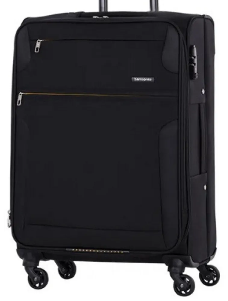 A Mala Samsonite Bahia é fabricada em poliéster e possui: Na parte interna, amplo compartimento; Divisor de compartimento em tecido com fechamento em zíper; -Cintas elásticas, para maior fixação de suas roupas; Totalmente forrada; Na parte externa, alça superior; Puxador com botão liberador e com regulagem de altura; 4 Rodas com giro 360°; Cadeado TSA com uma combinação de 3 dígitos; Fechamento em zíper.