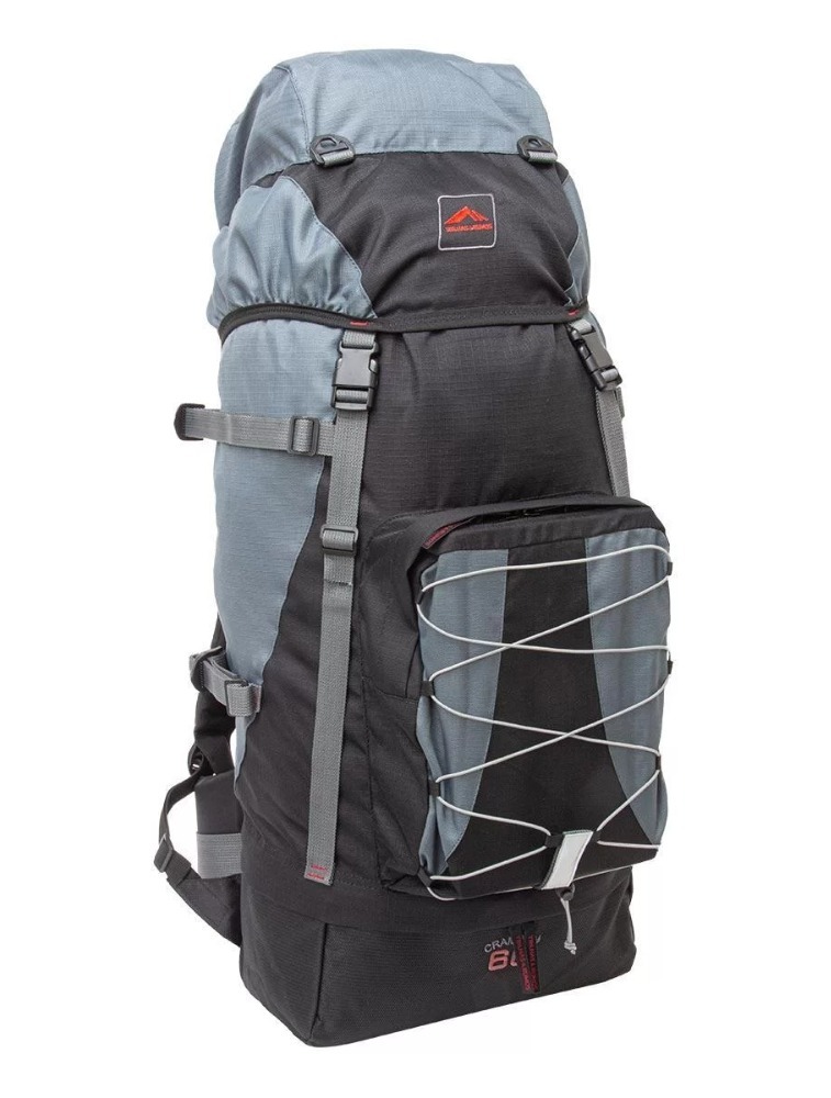 Toda em lona de náilon grossa,nossa mochila cargueira Crampon 60, possui armação em alumínio, fitas laterais de ajuste, acesso pelo fundo e pela tampa, cordões elásticos para fixar itens volumosos e/ou úmidos, além de bolso frontal amplo para pequenos objetos, mapas e documentos.
