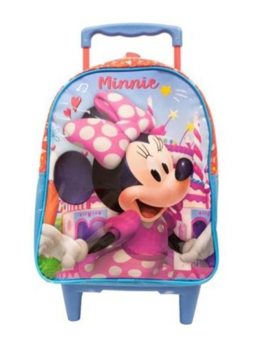 Mala com Rodas 16 Minnie X2 Em tamanho 16", e produzida em poliester resistente e estampado. Painel frontal PVC Cristal - Compartimento principal amplo, ziper com puxadores simples . Carrinho em metal com travas.